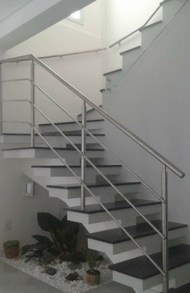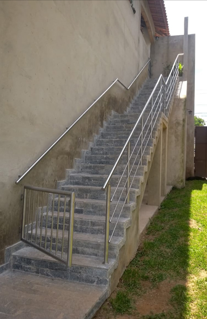 O corrimão de aço inox é uma barra de superfície lisa e arredondada que acompanha as laterais das escadas e rampas, auxiliando quem caminha por elas. É um apoio para o corpo, que traz mais equilíbrio e segurança ao subir e descer os desníveis.