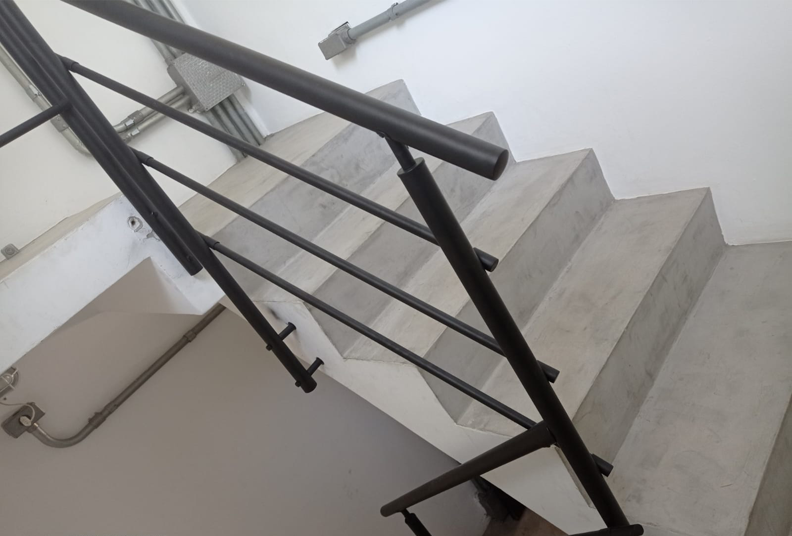 O corrimão uma barra de superfície lisa e arredondada que acompanha as laterais das escadas e rampas, auxiliando quem caminha por elas. É um apoio para o corpo, que traz mais equilíbrio e segurança ao subir e descer os desníveis.
